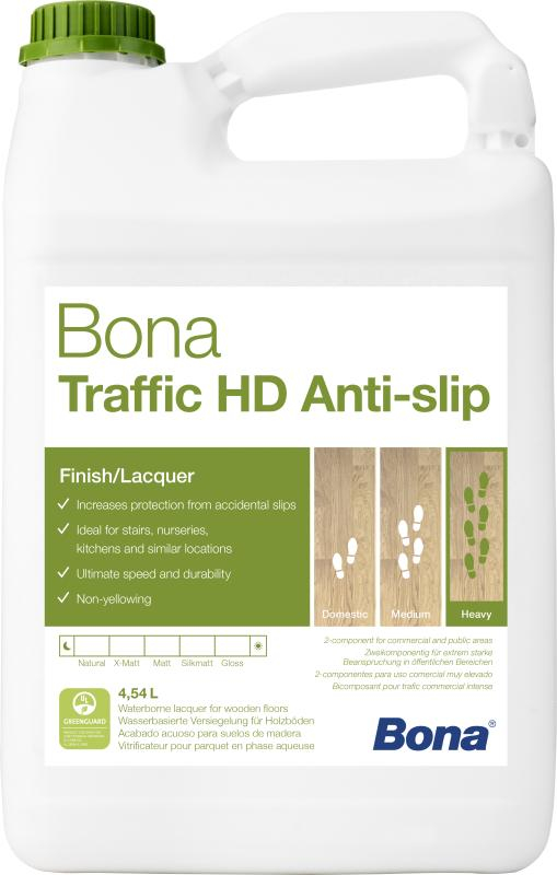 Bona Traffic HD Anti-slip possesses all the supreme features of Bona Traffic HD, but with the additional benefit of being formulated to meet the highest standards for slip resistance in commercial areas, staircases and other places with an increased risk of spillage or slipping.
